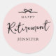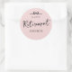 Crie o elegante partido de despedida com etiquetas a favor com este design redondo do Partido da Reforma feminina. Este adesivo de cor-de-rosa escamoteado é excelente de usar presentes ou decorações em bebidas de aposentadoria ou em um janto de despedida para um funcionário ou membro do funcionarios. Apresentando um design moderno com fonte de estilo manuscrito e motif de arco desenhado à mão, este adesivo favorito clássico do partido é totalmente personalizável para que você possa personalizá-lo de acordo com sua marca e estética de eventos.