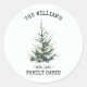 Traga o espírito festivo para dentro de sua casa com nosso adesivo de Natal, com uma bela árvore de Natal pintada a aquarela em um fundo branco nítido com nome de família.
