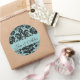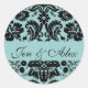 Adesivo Redondo Fecho de Casamento tema damasco de cor azul
