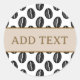 Feijão de café com adesivos personalizados. Padrão preto e branco. Editar texto para personalizar. Ideia de decoração para amantes de café.