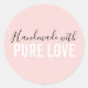 Adesivo Redondo Feita à mão com amor, escrita em tons de rosa