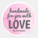 Design de adesivo branco cor-de-água rosa com texto "Feito para você com amor". Personalize este adesivo adicionando o seu próprio nome.