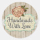 Adesivo Redondo Feita À Mão Com Rosas De Chique De Amor E Madeira