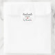Um adesivo moderno "feito à mão com amor" com uma fonte preta em um fundo de papelão embelezado por um coração vermelho giro. Personalizar texto.