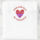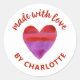 Um adesivo "Made with love" personalizado com um coração vermelho e roxo pintado sobre fundo branco colorido. Faça-o seu adicionando seu próprio nome. Um bonito toque final para todos os presentes feitos à mão. Projetado para você pelo Blackberry Boulevard.