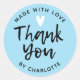 Um adesivo personalizado "feito com amor, obrigado você" de 1/2" em um fundo azul claro. Faça-o seu adicionando seu próprio nome. Um bonito toque final para todos os seus presentes feitos à mão e feitos em casa. Vem também com 3 polegadas. Perfeito para clientes obrigados em seu negócio de artesanato doméstico. Projetado para você pelo Blackberry Boulevard.