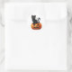Gato Preto Bonito a brindar a feiticeiras com palitos. Os autocolantes do Dia das Bruxas. Gatos, morcegos e abóboras. Excelente para convites e papéis de carta de Halloween. Ideias de artesanato do Dia das Bruxas.
