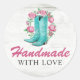 Adesivo Redondo Feito à Mão Com Amor Botas de Cowgirl Country & Ro