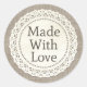 Adesivo Redondo Feito com Amor Renda Rústica Country em Burel para