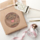 "Personalize" este adesivo redondo clássico com "Made with Love de..." sobre fundo de madeira rústica e seu nome com coroa botânica e coração cor-de-rosa! Verifique todas as opções antes de fazer o pedido.