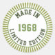 Texto que diz "Feito em 1968, Edição Limitada" Data e cores podem ser alteradas para lhe servir.