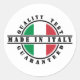 Mostre o seu amor por todas as coisas feitas em Itália, escolhendo esta design que tem as palavras feitas em Itália que se fixam sobre o fundo da bandeira italiana. À volta da bandeira em círculo está a expressão teste de qualidade garantido. Isto feito em Itália, design, parece excelente nestes autocolantes. Perfeito para si mesmo ou como presente
