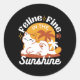 Adesivo Redondo Feline Fine no Sol - Gato Tropical Relaxado