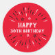 Adesivo Redondo Feliz 30º Aniversário Fogos de Artifício Vermelho