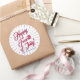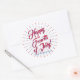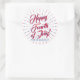 Feliz 4 de julho, estrelas vermelhas brancas e azuis fogos de artifício festivos clássicos adesivos redondos. Texto de script elegante. Com texto azul personalizado. Excelente para comemorar o dia 4 de julho, Dia da Independência, festas de férias. Verifique o resto da coleção para itens de coordenação correspondentes.
