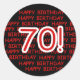 Design de aniversário de 70 Feliz, preto, vermelho e branco em T-shirts, cartas, canecas, botões e outros artigos de aniversário de 70.