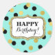Adesivo Redondo Feliz aniversário Azul Negro Dourado Confetti