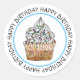 Adesivo Redondo Feliz aniversário Cartoon Vanilla Cupcake