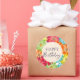 Adesivo Redondo Feliz Aniversário Colorida Flores de primavera
