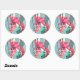 Adesivo Redondo Feliz Aniversário Colorida Magnolia Rosa Abstrato