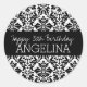Adesivo Redondo Feliz aniversário com Trendy Black e White Damask