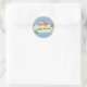 Este adesivo redondo clássico apresenta uma preguiça bonita e feliz pendurada no sinal de Parabéns. Este adesivo completará seu cartão de aniversário/presente e colocará um sorriso no receptor.