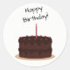 Adesivo Redondo Feliz Aniversário de Bolo de Chocolate
