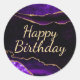 Adesivo Redondo Feliz aniversário do Agitador Roxo e Dourado
