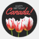 Adesivo Redondo Feliz Aniversário do Canadá Mapeando Tulipas Folho