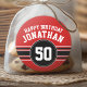 Vermelho, Branco e Negro - Este design de esporte e de corridas é perfeito para qualquer atleta que joga hóquei, futebol, futebol ou beisebol. Você muda os números para seu número de sorte ou mesmo uma idade especial para uma comemoração de aniversário. Um design robusto e masculino com uma área para qualquer data de aniversário - 5, 50º, 70 ou outro!