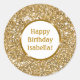 Adesivo Redondo Feliz Aniversário do Faux Dourado Yellow Glitter C