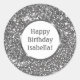 Adesivo Redondo Feliz Aniversário do Faux Silver Cinza Glitter