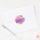 Adesivo Redondo Feliz Aniversário Do Nome Balões Rosa Púrpura Dour