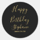 Adesivo Redondo Feliz Aniversário Dourado Amarelo Preto Nome Perso