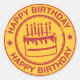 Adesivo Redondo Feliz Aniversário - efeito de carimbo vermelho-