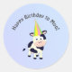 Adesivo Redondo Feliz Aniversário Engraçado da Vaca Festa Moo