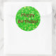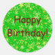 Feliz Aniversário, estrelas verdes amarelas abstrato Classic Round Sticker.