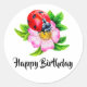 Adesivo Redondo Feliz aniversário Floral Ladybug