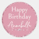 Adesivo Redondo Feliz Aniversário Glamorous Pink Glitter e Diamant