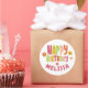 Adesivo Redondo FELIZ ANIVERSÁRIO Groovy Daisies COROSO PERSONALIZ