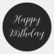 Adesivo Redondo Feliz Aniversário Negro Mínimo Branco Moderno