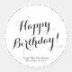 O nome do script personalizado de Aniversário feliz favorece os adesivos redondos clássicos. nomes e datas rodeados por uma fronteira de pontos delicada, preto e branco