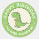Feliz Aniversário, Dinossauro, Clássico Vinheta Redonda. Dinossauro bonito faz um adesivo personalizado divertido com o nome do aniversariante.