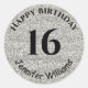 Este é um clássico design com fundo cintilante prateado para festas de aniversário. Você pode personalizar com o nome e a idade de aniversário no adesivo da festa.
