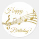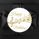 Adesivo Redondo Feliz Aniversário, notas de ouro brancas
