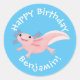 Adesivo Redondo Feliz aniversário personalizado do axolotl branco