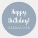 Adesivo Redondo Feliz Aniversário Personalizado Dusty Blue
