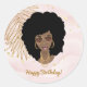 Adesivo Redondo Feliz aniversário, rosa e Dourada, tropical, mulhe