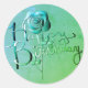 Adesivo Redondo Feliz aniversário! Rosa Verde 3D manuscrito