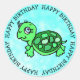 Adesivo Redondo Feliz Aniversário Tartaruga Tropical
